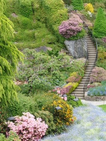 - Formal steps should be edged with low walls over which plants can be grown to soften the edges.